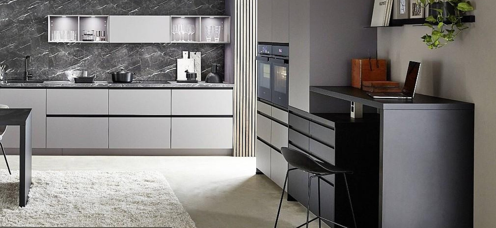 Natürlich geht in Sachen Home Office nichts über ein extra Zimmer für den benötigten Büroarbeitsplatz. Häufig steht in der Wohnung aber kein freier Raum zur Verfügung. Wenn die Wohnung dann noch so geschnitten ist, dass Küche und Wohnzimmer offen ineinander übergehen, bleibt eigentlich nur noch die Küche, in die das Home Office integriert werden kann.