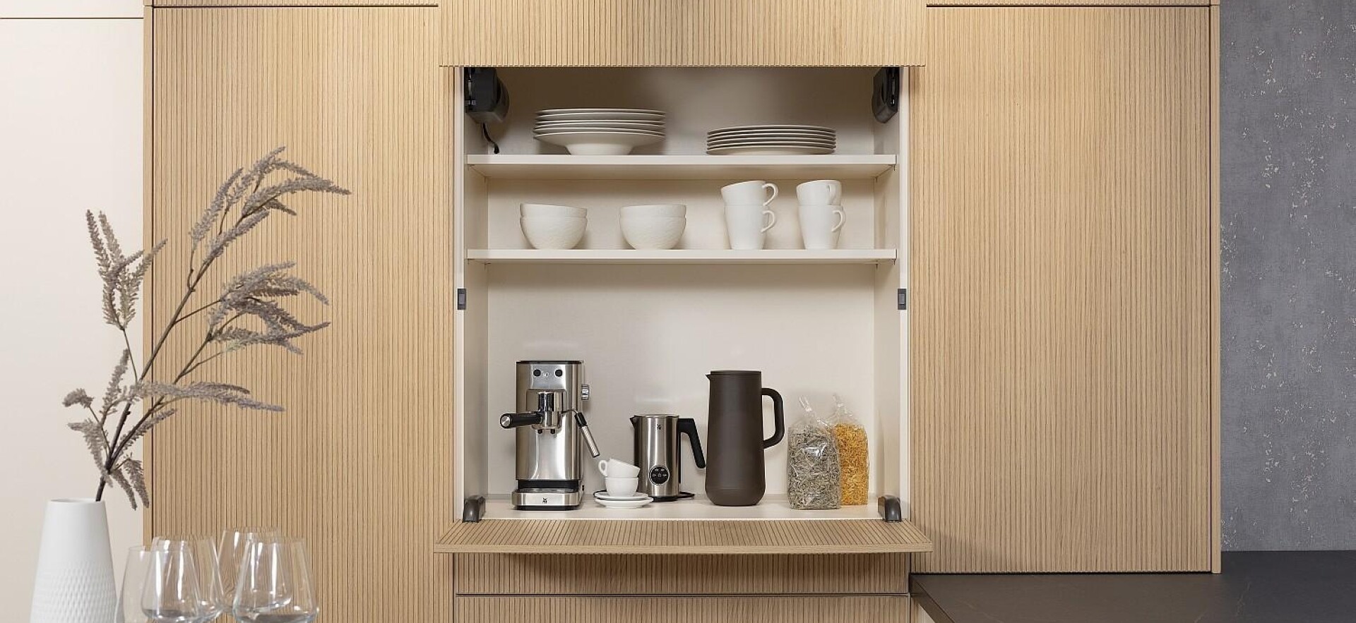 Grifflos, aber nicht glatt. Puristisch und trotzdem natürlich – solche Effekte entstehen z.B. durch geriffelte Fronten. Sie sind das neue It-Piece in der Küchengestaltung, und es gibt sie in unterschiedlichsten Ausführungen, ob längs oder quer gerillt, ob Echtholz, Furnier, hell bis schwarz, aus Holzdekor oder biobasiertem Kunststoff.